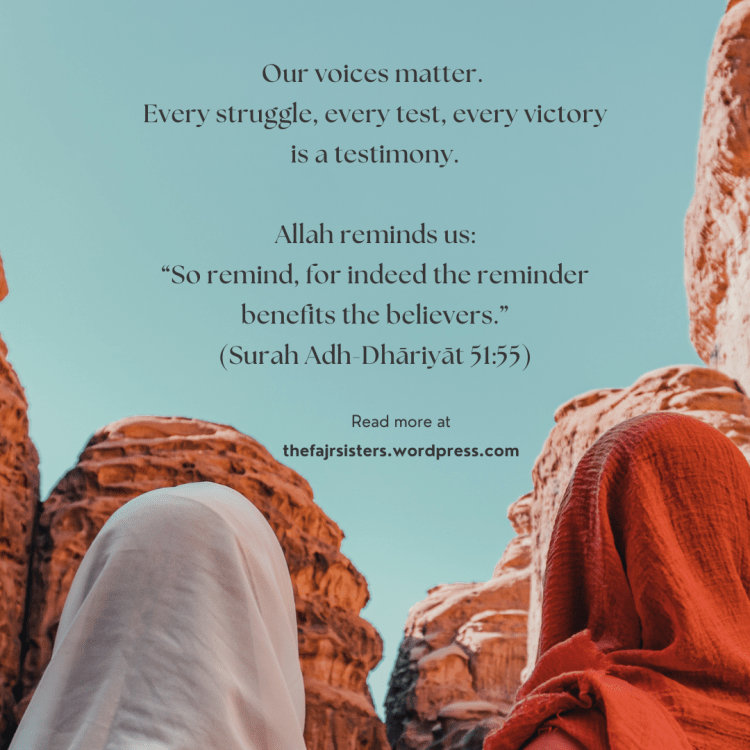 That morning I was reminded: our voices matter. Every struggle, every test, every victory is a testimony. Allah reminds us: